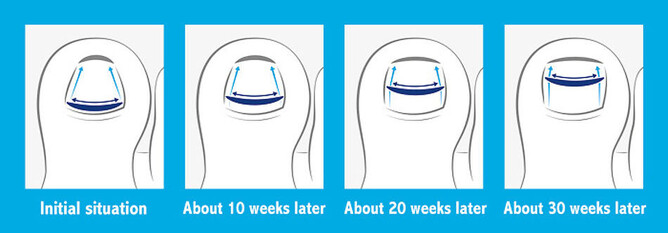 We recommend using Onyfix for a minimum of 2-3 months to help you get the best, long-lasting results. Depending on how severely your toenail is curved, it may take longer and multiple strips may be required simultaneously, up to three or four, applied at six-weekly intervals. As the strip is applied to the base of the nail, as your nail grows, the strip will grow with it and continue to work. Both you and your podiatrist will be able to monitor progress over time and discuss the need for any extra applications. Some of our patients use the strips for six months or longer - but don’t worry, they’re barely noticeable on your nails and there’s no discomfort.
